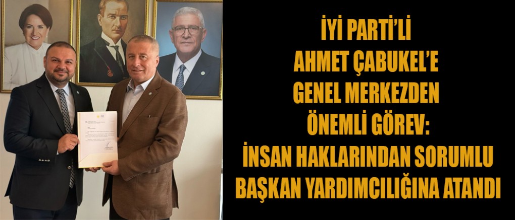 Daha önce İYİ Parti Kahramanmaraş İl Başkanlığı görevini yürüten ve 28. Dönem Milletvekili Aday olarak siyasi arenada aktif rol alan Av. Ahmet Çabukel, İYİ Parti Hukuk-Seçim ve Parlamento İlişkileri Başkanlığı bünyesinde “İnsan Haklarından Sorumlu Başkan Yardımcısı” olarak atandı.