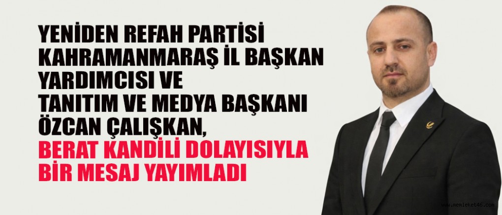 Yeniden Refah Partisi Kahramanmaraş İl Başkan Yardımcısı ve Tanıtım ve Medya Başkanı Özcan Çalışkan, Berat Kandili dolayısıyla bir mesaj yayımladı.