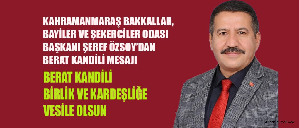 Kahramanmaraş Bakkallar, Bayiler ve Şekerciler Odası Başkanı Şeref Özsoy, Berat Kandili dolayısıyla bir mesaj yayımladı.
