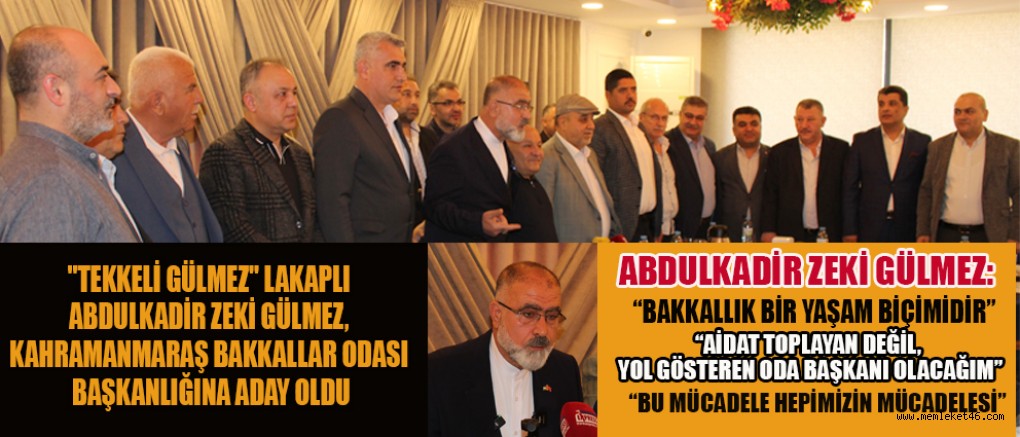 "TEKKELİ GÜLMEZ" LAKAPLI ABDULKADİR ZEKİ GÜLMEZ, KAHRAMANMARAŞ BAKKALLAR ODASI BAŞKANLIĞINA ADAY OLDU
