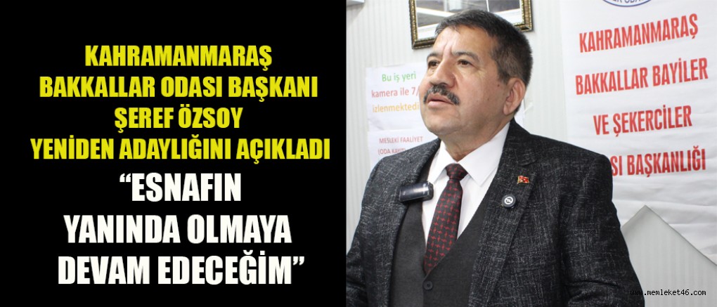 KAHRAMANMARAŞ BAKKALLAR ODASI BAŞKANI ŞEREF ÖZSOY YENİDEN ADAYLIĞINI AÇIKLADI