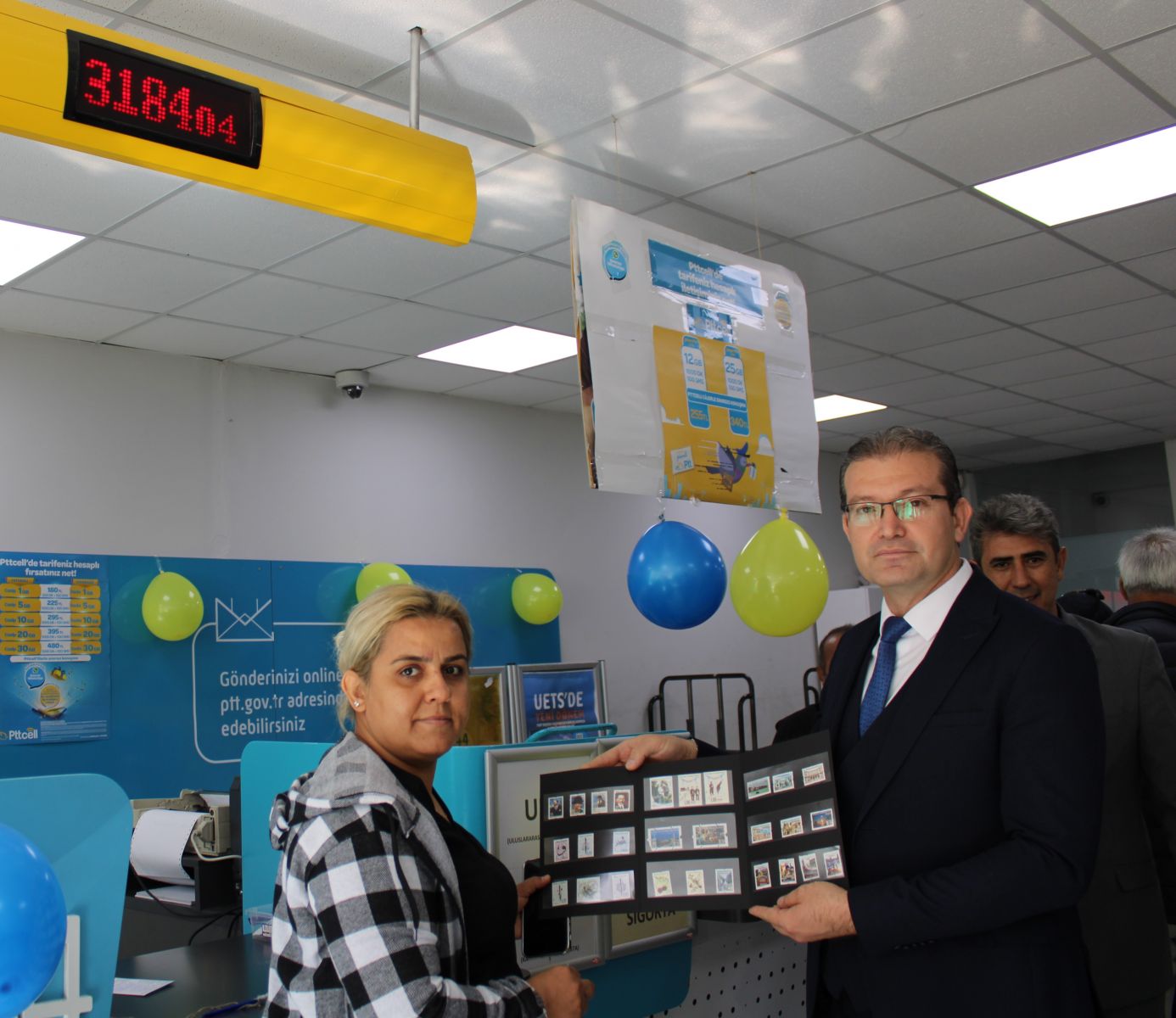 Kargo göndermek için Ptt'nin kuruluş yıl dönümüyle aynı rakamları taşıyan 184 gişe numarasını alan Senem Domurcuk’a Kahramanmaraş PTT Başmüdürü Harun Oğuzhanoğlu tarafından Ptt anma pulu serisi olan bir albüm hediye edildi.