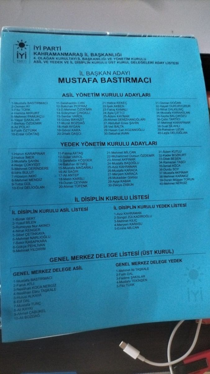 İYİ Parti Kahramanmaraş İl Başkanlığı için gerçekleştirilen Olağan İl Kongresi büyük bir heyecanla tamamlandı. Yapılan seçim sonucunda, 299 oy alarak İYİ Parti Kahramanmaraş İl Başkanlığı’na Mustafa Bastırmacı seçildi.