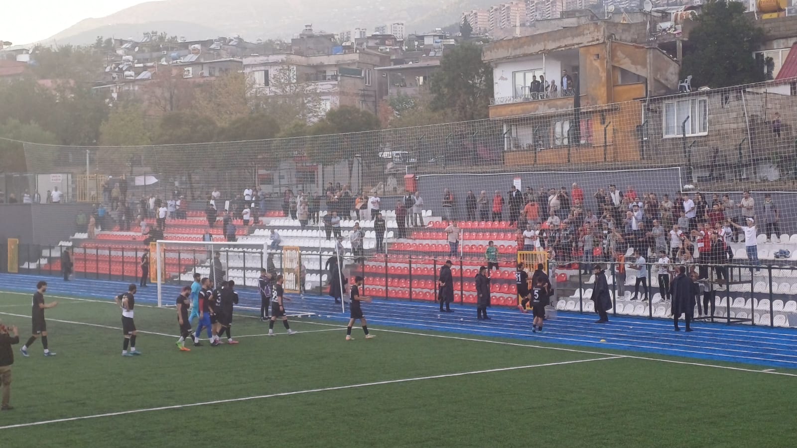 Maçın 39. dakikasında aşırı yağış nedeniyle mücadele kısa bir süre durdu. Yağmurun etkisini azaltmasıyla tekrar başlayan karşılaşmada Kahramanmaraşspor, 41. dakikada Emre Aydın’ın golüyle farkı 2’ye çıkardı. İlk yarı Kahramanmaraşspor’un 2-0 üstünlüğüyle sona erdi.