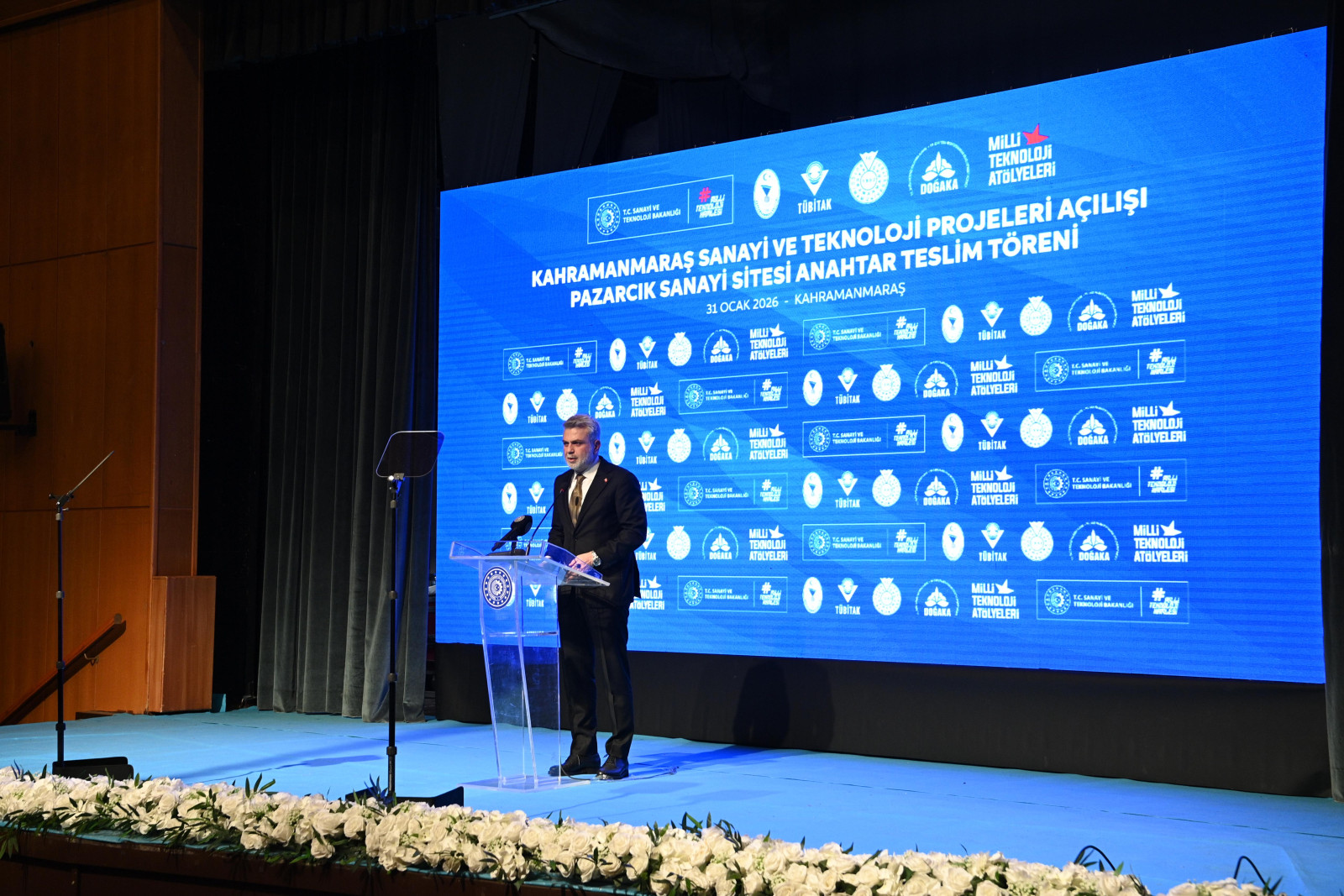 Sanayi ve Teknoloji Bakanı Mehmet Fatih Kacır’ın katılımıyla “Kahramanmaraş Sanayi ve Teknoloji Projeleri Açılışı ve Pazarcık Sanayi Sitesi Anahtar Teslim Töreni” gerçekleştirildi. Necip Fazıl Kısakürek Kültür Merkezi’nde düzenlenen programa 66. Hükümet Tarım ve Orman Bakanı Prof. Dr. Vahit Kirişci, Vali Mükerrem Ünlüer, AK Parti Kahramanmaraş Milletvekilleri Ömer Oruç Bilal Debgici, Tuba Köksal, Mevlüt Kurt ve İrfan Karatutlu, Büyükşehir Belediye Başkanı Fırat Görgel, AK Parti İl Başkanı Muhammed Burak Gül, Kahramanmaraş Ticaret ve Sanayi Odası Başkanı Mustafa Buluntu, Ticaret Borsası Başkanı Mustafa Narlı, iş insanları, sanayi temsilcileri ve çok sayıda vatandaş katıldı.