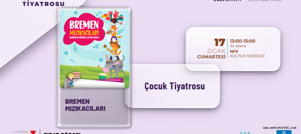 Kahramanmaraş Büyükşehir Belediyesi, çocukların yarıyıl tatilini hem eğlenceli hem de öğretici bir şekilde geçirmesi amacıyla birbirinden renkli etkinlikleri miniklerle buluşturuyor. Kültür ve sanat faaliyetlerine büyük önem veren Büyükşehir Belediyesi, tatilin ilk günlerinde çocuklara özel tiyatro gösterileriyle adeta bir şenlik havası oluşturacak. Yarıyıl tatili etkinlikleri kapsamında, 17 Ocak Cumartesi günü Necip Fazıl Kısakürek Kültür Merkezi’nde sahnelenecek olan “Bremen Mızıkacıları” adlı maskotlu müzikal çocuk oyunu, minik izleyicilerle buluşacak. Sevilen masal kahramanlarının sahneye taşındığı gösteri, 13.00 ve 15.00 saatlerinde iki perde halinde sahnelenecek. Renkli kostümleri, hareketli sahne performansları ve eğlenceli anlatımıyla dikkat çeken oyun, çocuklara keyifli anlar yaşatacak.