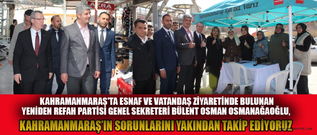 Yeniden Refah Partisi Genel Başkan Yardımcısı ve Genel Sekreteri Bülent Osman OSMANAĞAOĞLU, beraberinde il ve ilçe yönetim kurulu üyeleriyle birlikte Kahramanmaraş’a bir ziyaret gerçekleştirdi. Ramazan ayı dolayısıyla düzenledikleri esnaf ziyaretlerinde, esnafların taleplerini dinleyen OSMANAĞAOĞLU, deprem sonrası yaşanan sorunlara da dikkat çekti.